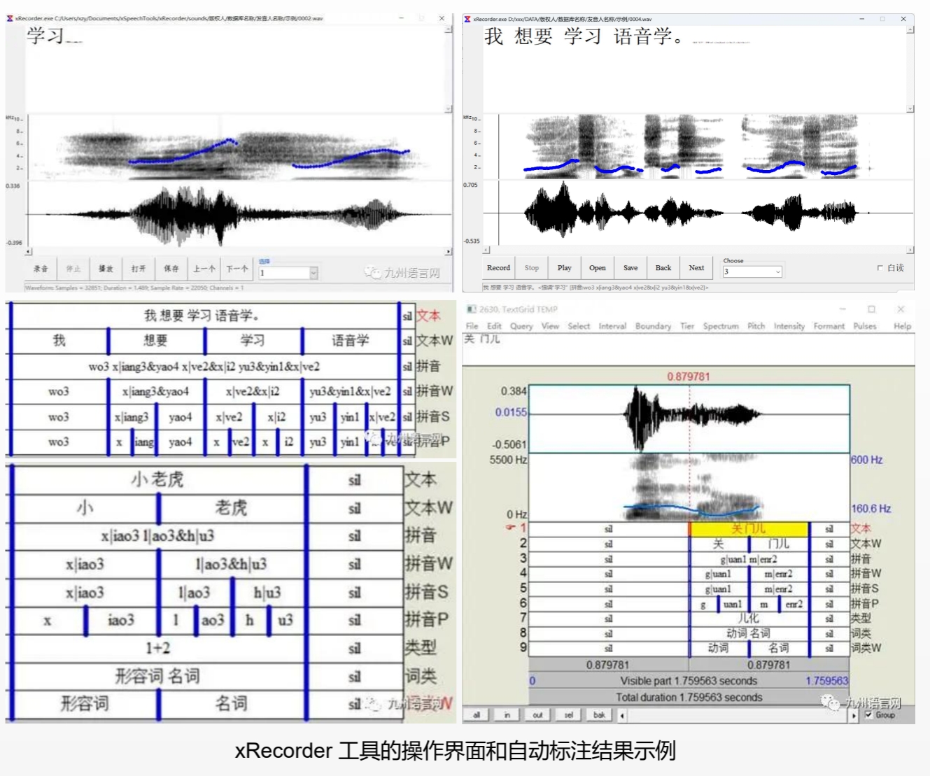 xRecorder 工具主要面向较大规模的语音数据采集任务,支持 wav 格式的音频文件逐条录制、保存、播放与声学参数分析显示。