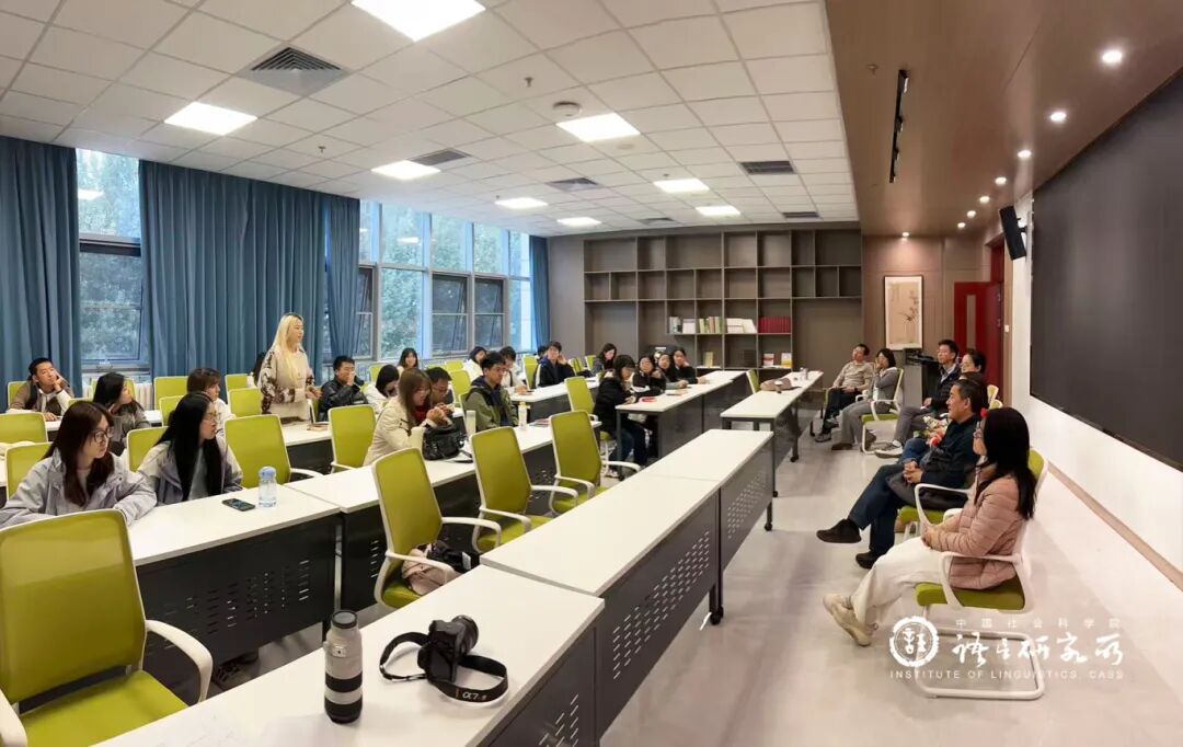 在成果演示环节,薛嗣媛博士介绍了“西夏文数智平台”的最新研发进展。该平台以古文字数字化与人工智能识读为核心,结合图像识别与语言建模技术,展示了传统语言学与现代科技的深度融合。师生们纷纷表示,这不仅是语言学技术化的体现,更是文化遗产保护的创新尝试。