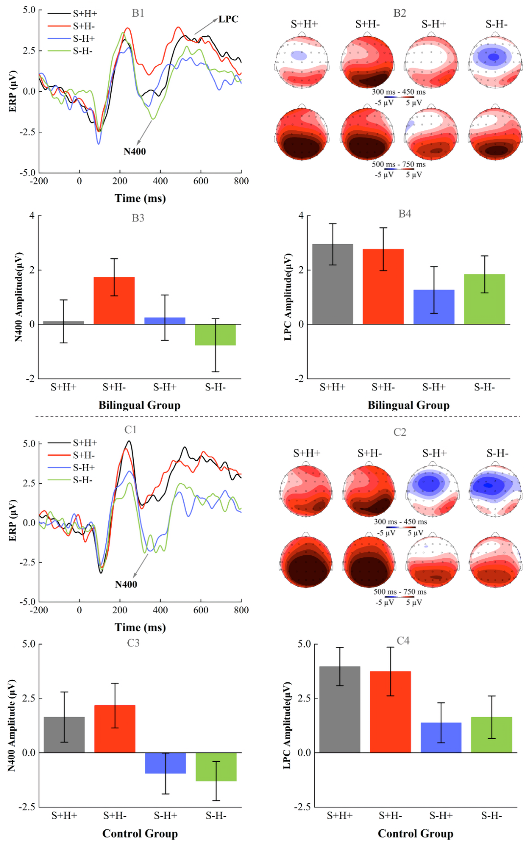 通过对比双语者在这两种条件下N400成分的波幅(N400波幅与语义启动情况相关),可以判断日语语义是否被同步激活。